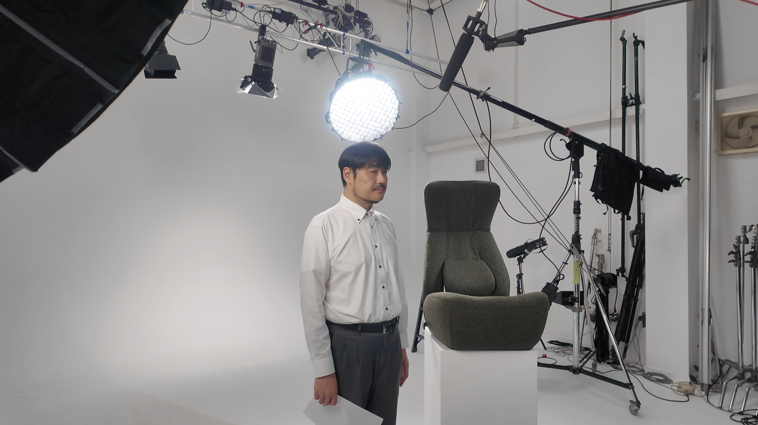 都内スタジオには、監督さんをはじめ、カメラさん・照明さん・音声さん・ヘアメイクさんと、まるで映画さながらの機材と人。
